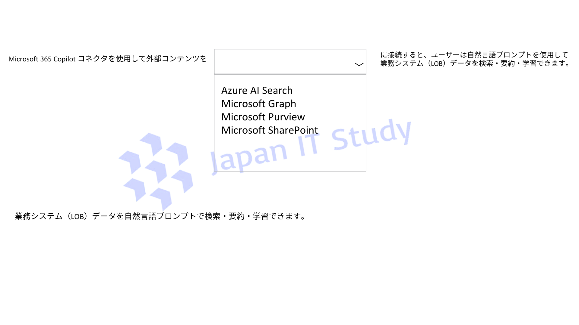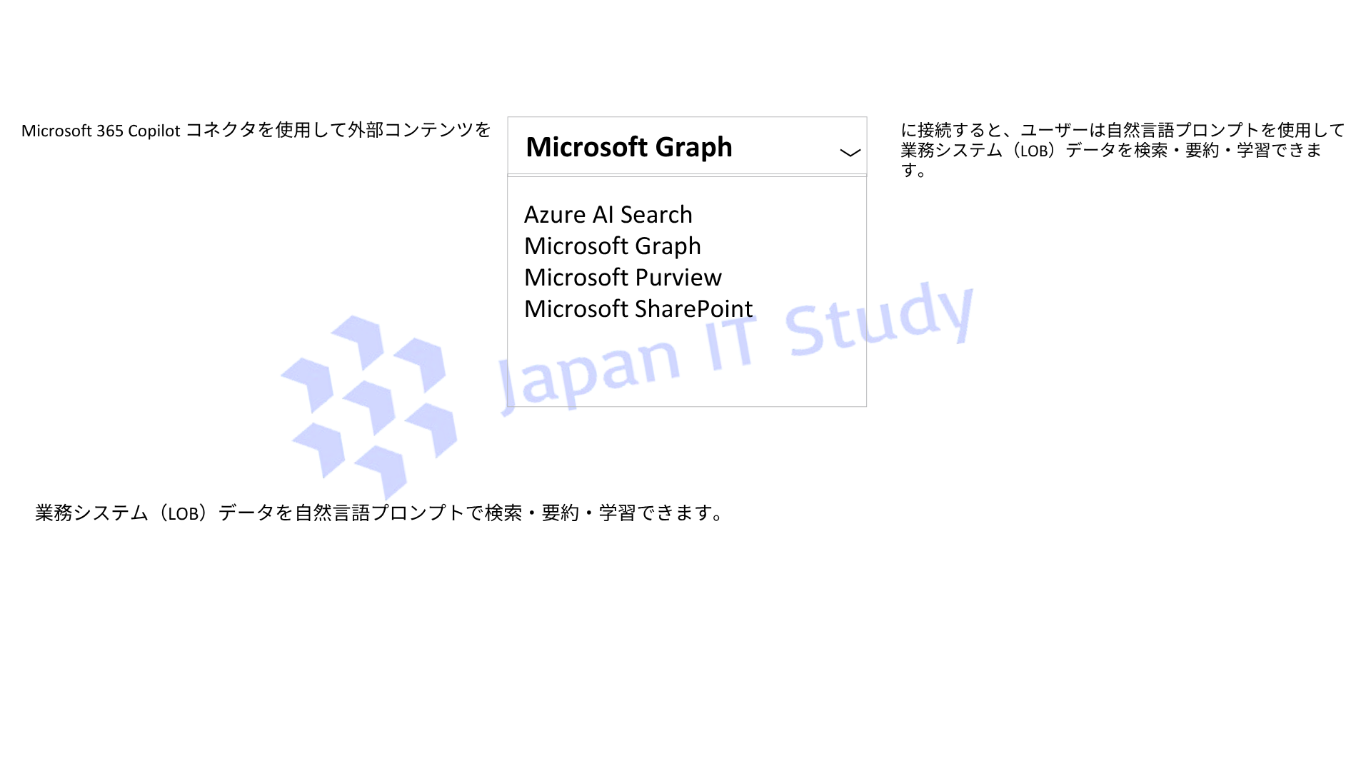 Microsoft 365 Copilot コネクタは外部データをMicrosoft Graphに取り込み、Microsoft 365全体で検索・活用できるようにする仕組みであるため、接続先はMicrosoft Graphとなります。