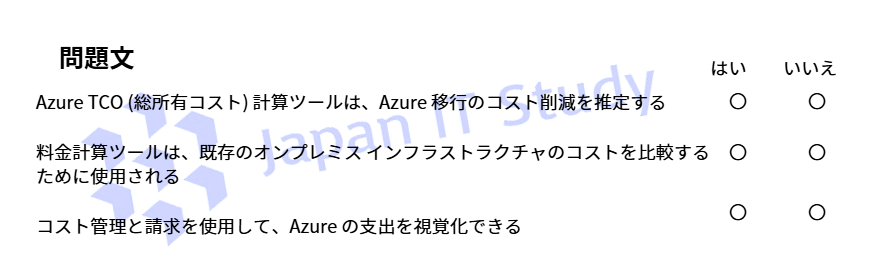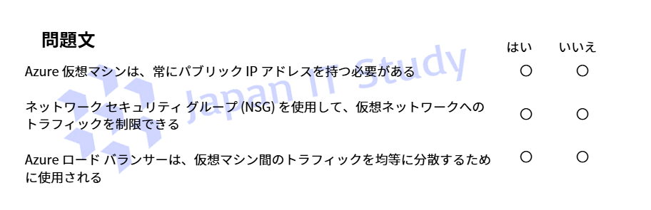Q3.次の各文について、正しい場合は「はい」を選択してください。そうでない場合は「いいえ」を選択 してください