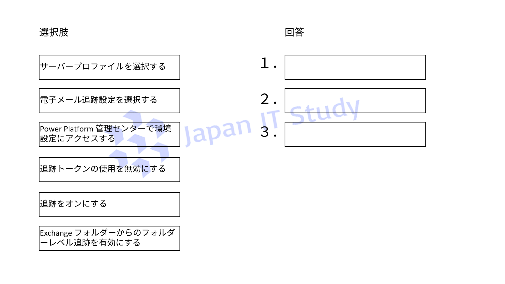 適切な3つのアクションを正しい順序で並べてください。