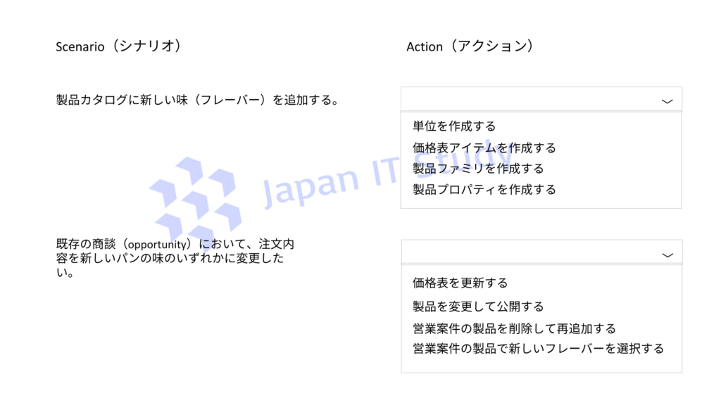 この問題は、Dynamics 365 Sales の製品カタログにおける「バリエーション管理」の理解がポイントです。