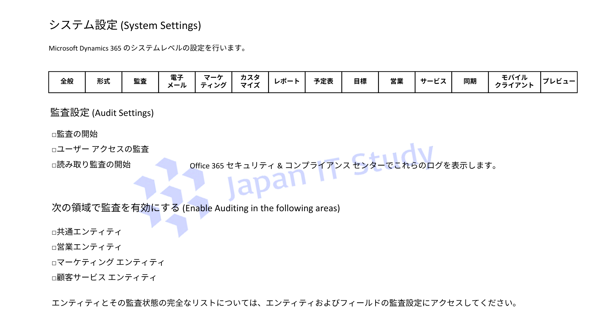 Dataverse で監査機能を利用するには、まずシステム全体で監査を有効化する必要があります。