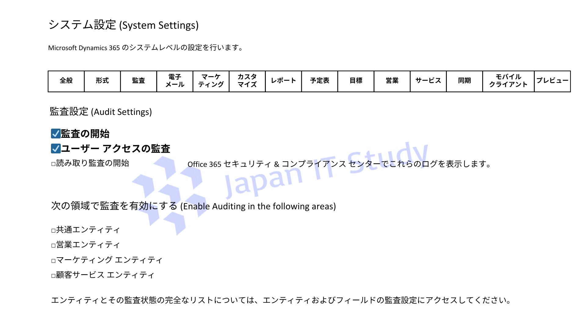 ユーザー操作の追跡には「Audit user access」の有効化が必須です。