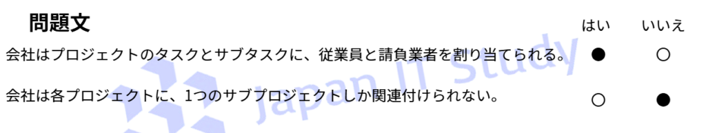 2 は「1つしか関連付けできない」という制約が強すぎます。Project Operations の契約/プロジェクト構造の考え方では、複数の要素(複数プロジェクト/配下構造)を扱う設計が一般的であり、「1つだけ」とは言えないため「いいえ」になります。